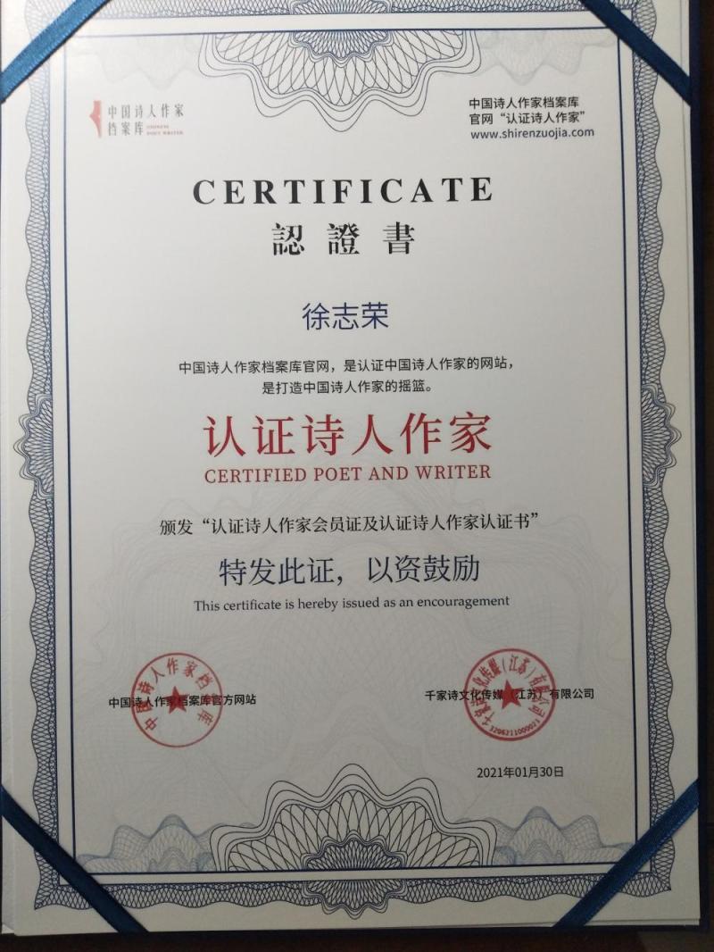 徐志荣,中国楹联学会会员,中华文旅诗词学会理事,福建省诗词学会会员。