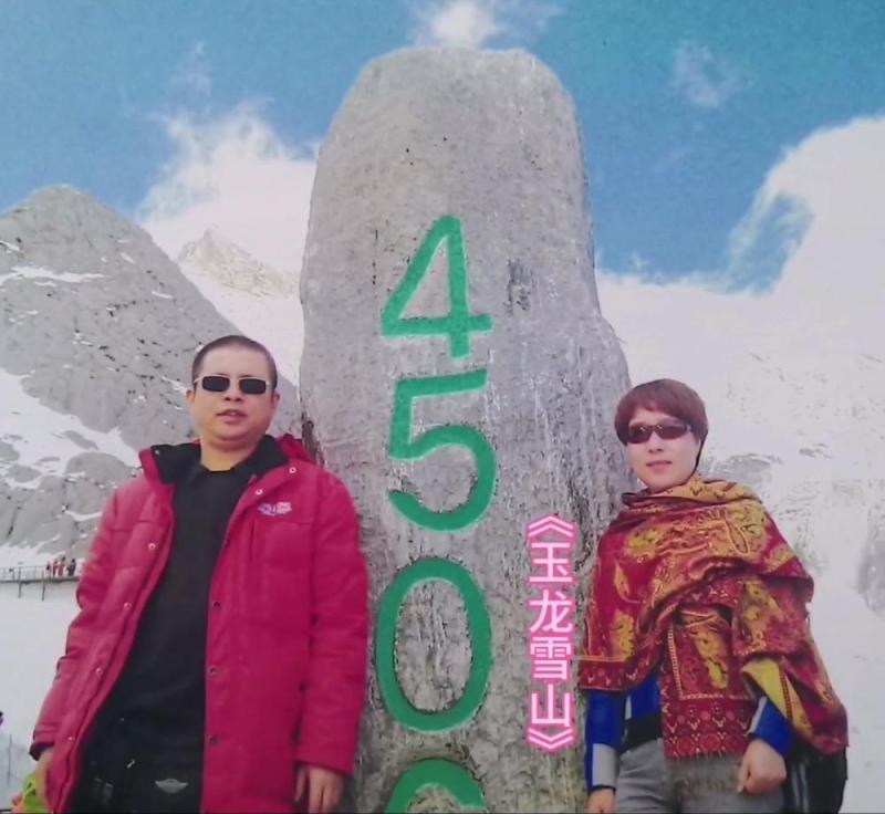 玉龙雪岭证相逢,数字石前笑意浓。岁月轻吟心底事,一襟云影伴情钟。