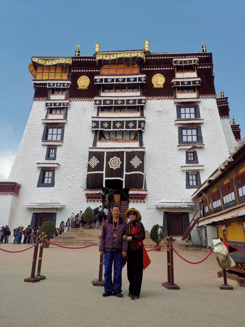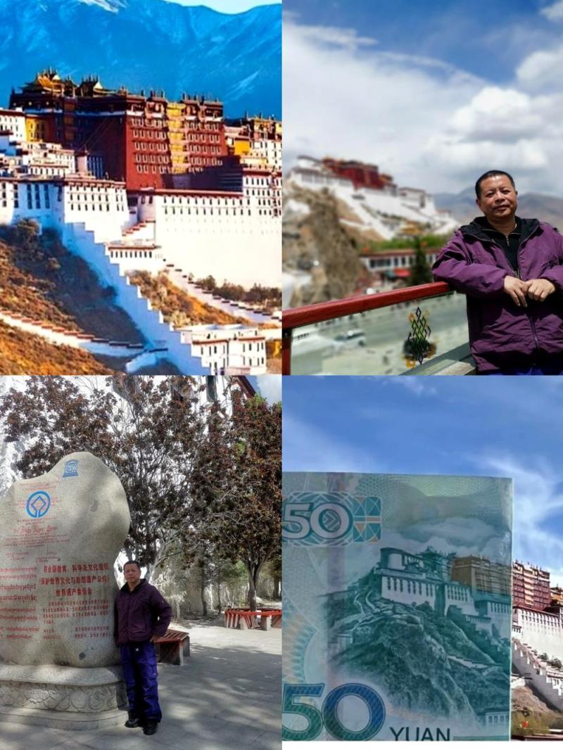 雪域嵯峨接紫穹,梵宫金顶沐春风。云裁哈达峰峦系,霞染经幡岁月融。酥灯曳,法螺嗡。真言百转叩苍穹。菩提一树参天立,遍洒清荫庇世衷。
