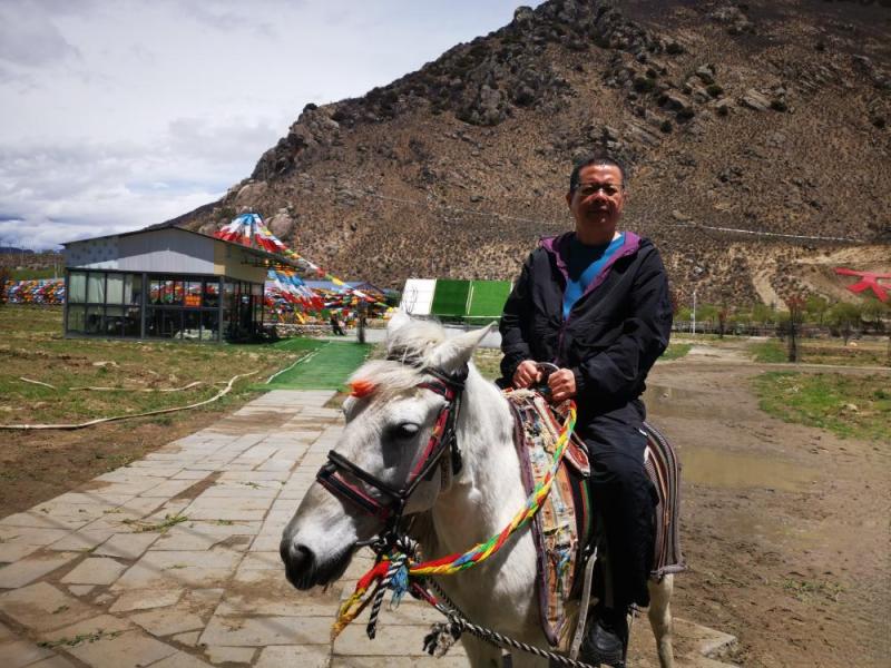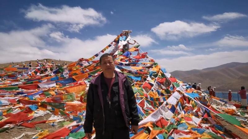 一练澄明绕翠螺,夭桃照影晕红酡。云扶雪岭幡摇偈,风皱春漪棹点梭。青稞酿,野炊锅。牧歌遥答褐衣蓑。斜阳醉倚林卡帐,漫数星河坠草坡。