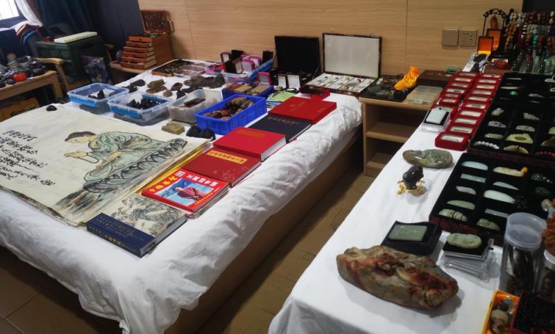 青瓷映日,古砚凝霜,八闽三浙琳琅。宋窑遗韵,元墨染沧桑。玉璧曾随剑佩,铜炉篆、汉月苍茫。回廊转,牙雕镂月,锦瑟泛幽光。 华堂,人似织,朱钤识款,素手量方。叹徽宗松石,米芾云章。半卷敦煌旧帛,浮尘拭、再续华章。千年事,物华聚此,山海共潮香。