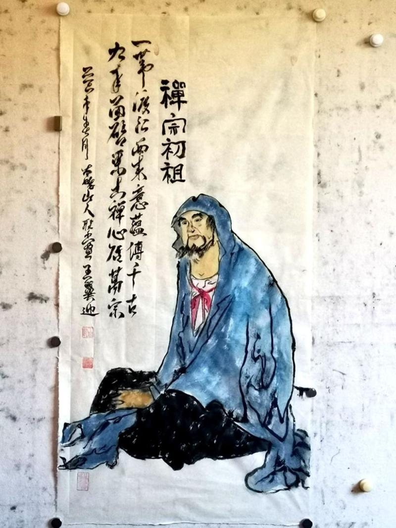 江天万里秋烟渺,一苇凌波何去? 孤峰影寂,寒岩雪积,九年如许。 衣带云风,心随月冷,禅灯独语。 任潮生潮灭,尘嚣尽散,空山外、菩提路。 曾记梁皇问法,对机锋、默然相负。 折芦作棹,西来意远,中州谁渡? 面壁非空,传薪有继,少林钟鼓。 叹人间俯仰,拈花笑罢,是西归处。