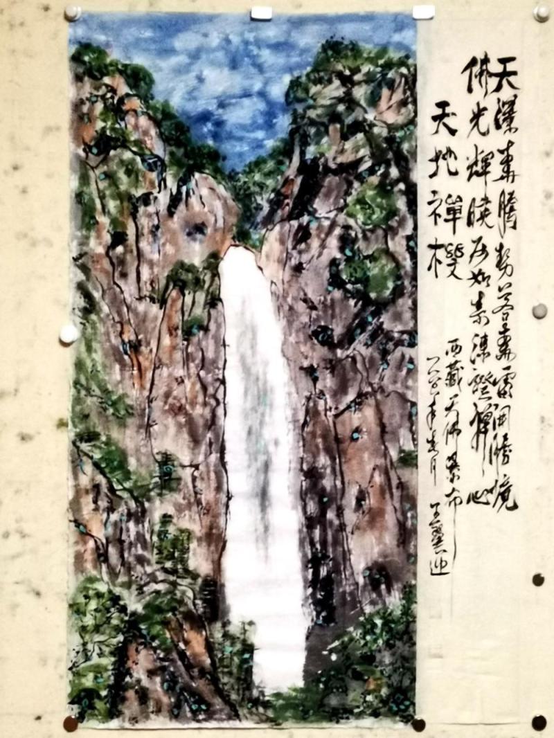 天际素绢落,佛意隐林泉。瀑声如雷惊起,银汉落尘寰。千丈水帘垂挂,万斛珍珠飞洒,气势破重山。玉雪溅幽壑,清气满山川。 倚危石,观胜景,意悠然。自然佳处,心醉神往不思还。尘世喧嚣皆忘,静赏飞流跌宕,逸趣满心田。愿得此中住,长共水云闲。