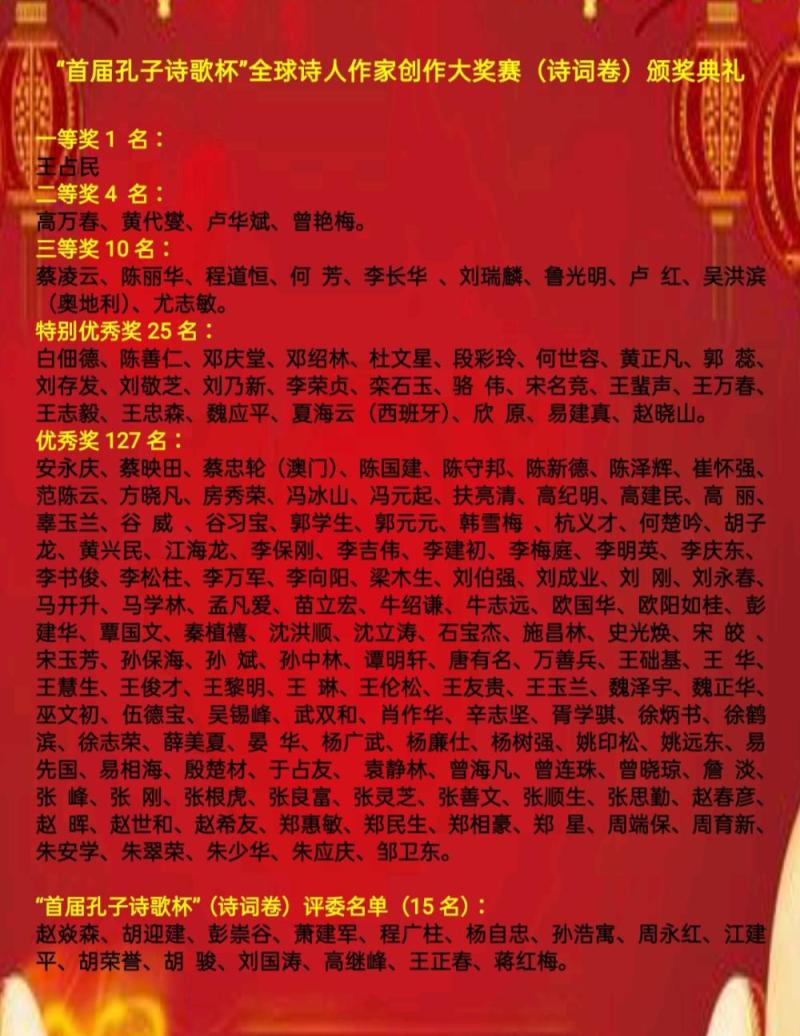 5:“孔子诗歌杯”优秀奖若干名,颁发荣誉证书。
