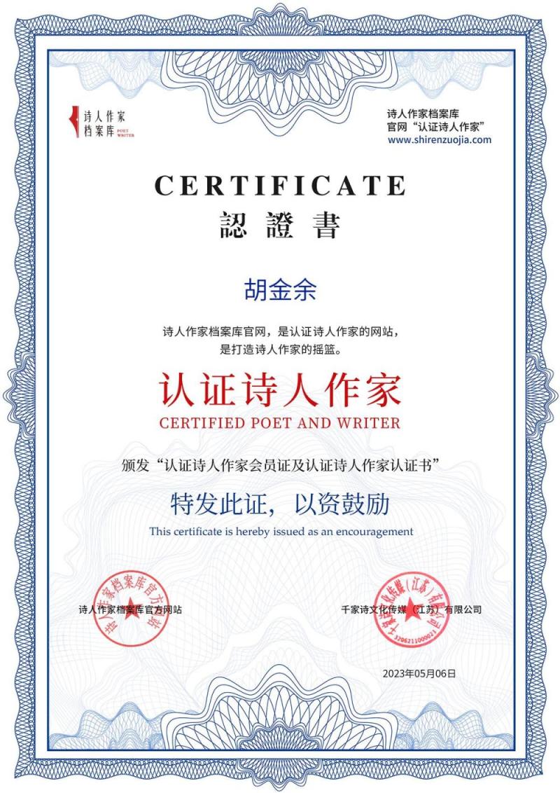 认证诗人作家并办理中国诗人作家认证证书及官网会员证的诗人老师请联系: