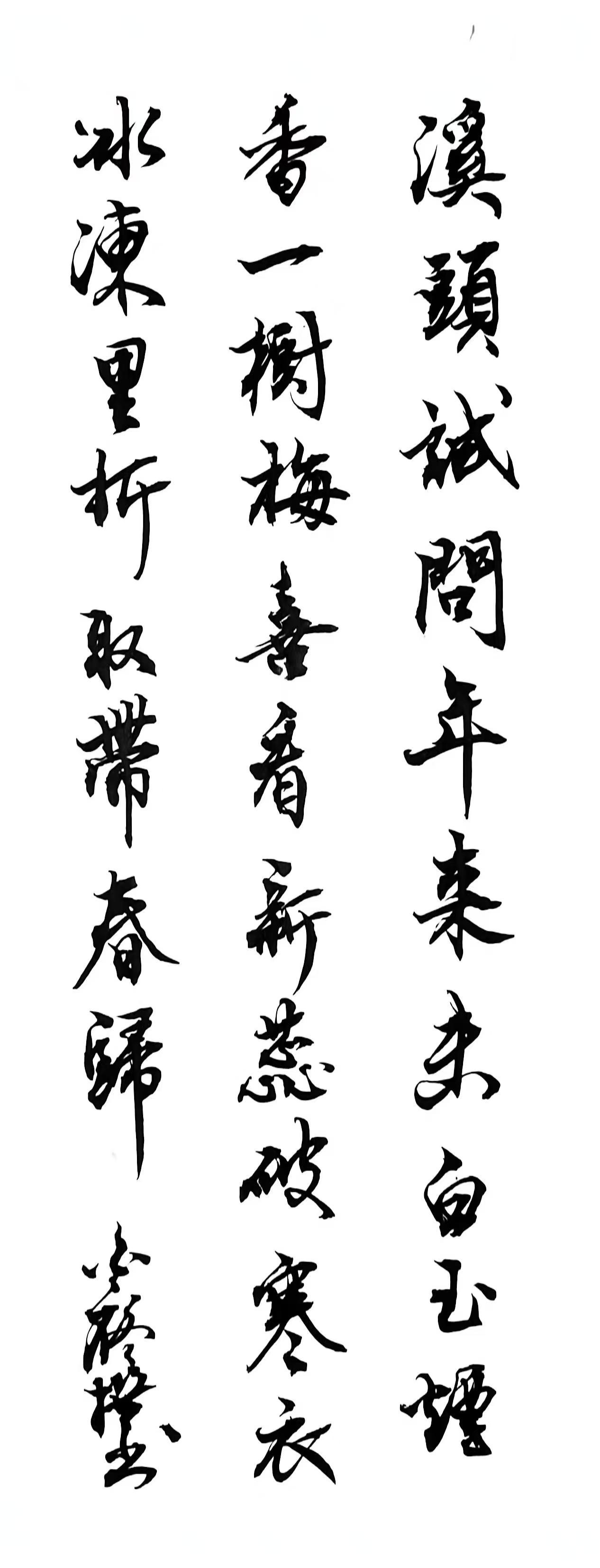 溪头试问年来未?白玉烟香一树梅,喜看新蕊破寒衣。冰冻里,折取带春归。