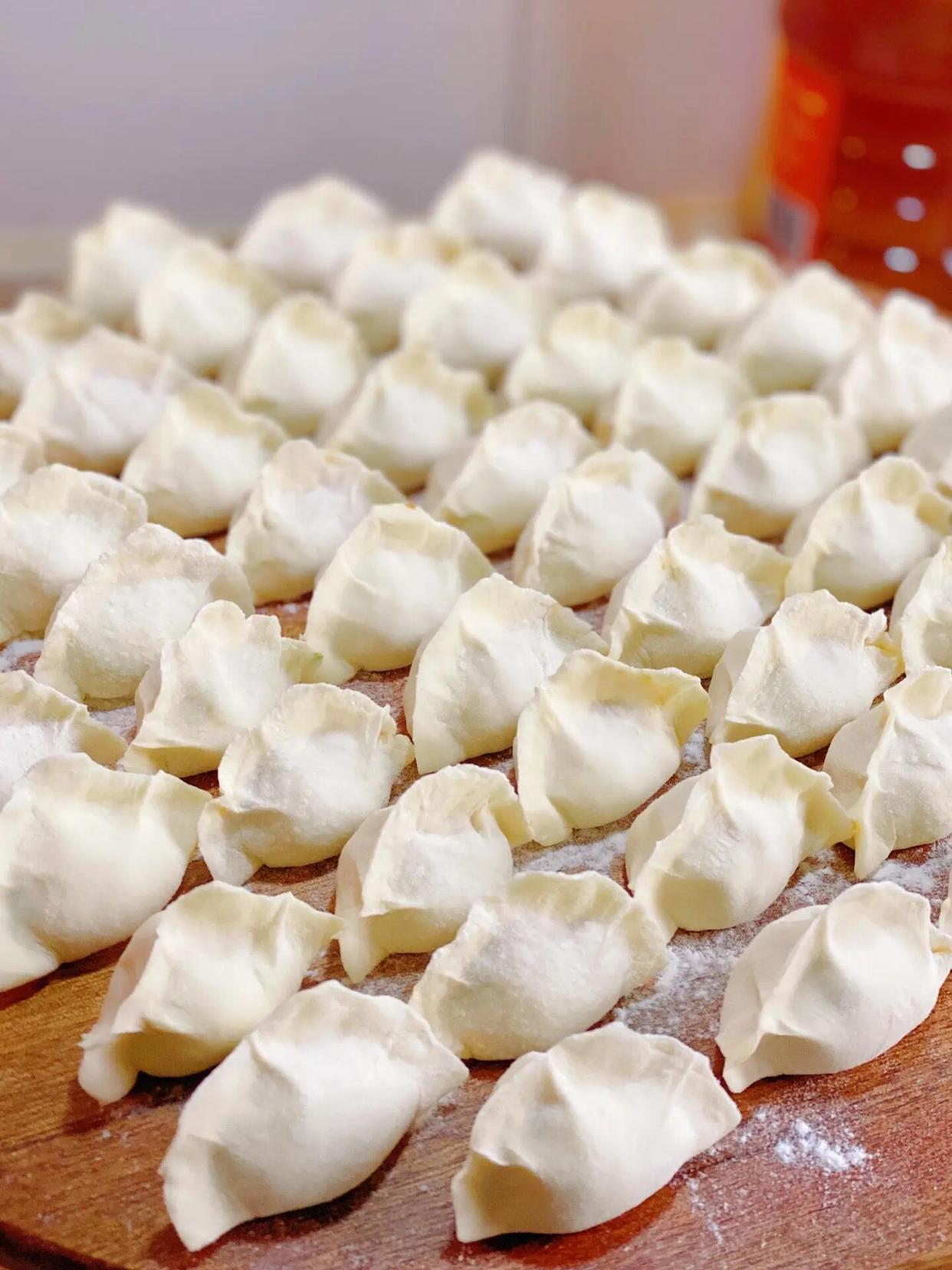 面皮轻擀玉轮前,巧手拈花皎月边。