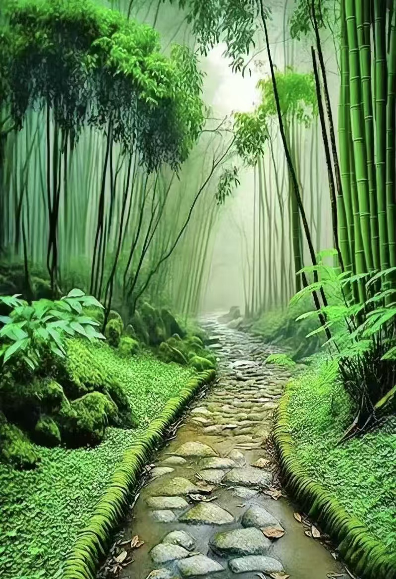 颔联绘其神,“常年浮翠色/四季漾清芳/“。“常年”见其暑寒不凋。“浮翠”化静为动,赋予色彩流动感。“四季”既实轮回写竹节,亦暗喻韧性。“漾清芳”以通感手法传其幽韵。一“浮”一“漾”,竹之生命力跃然纸上。