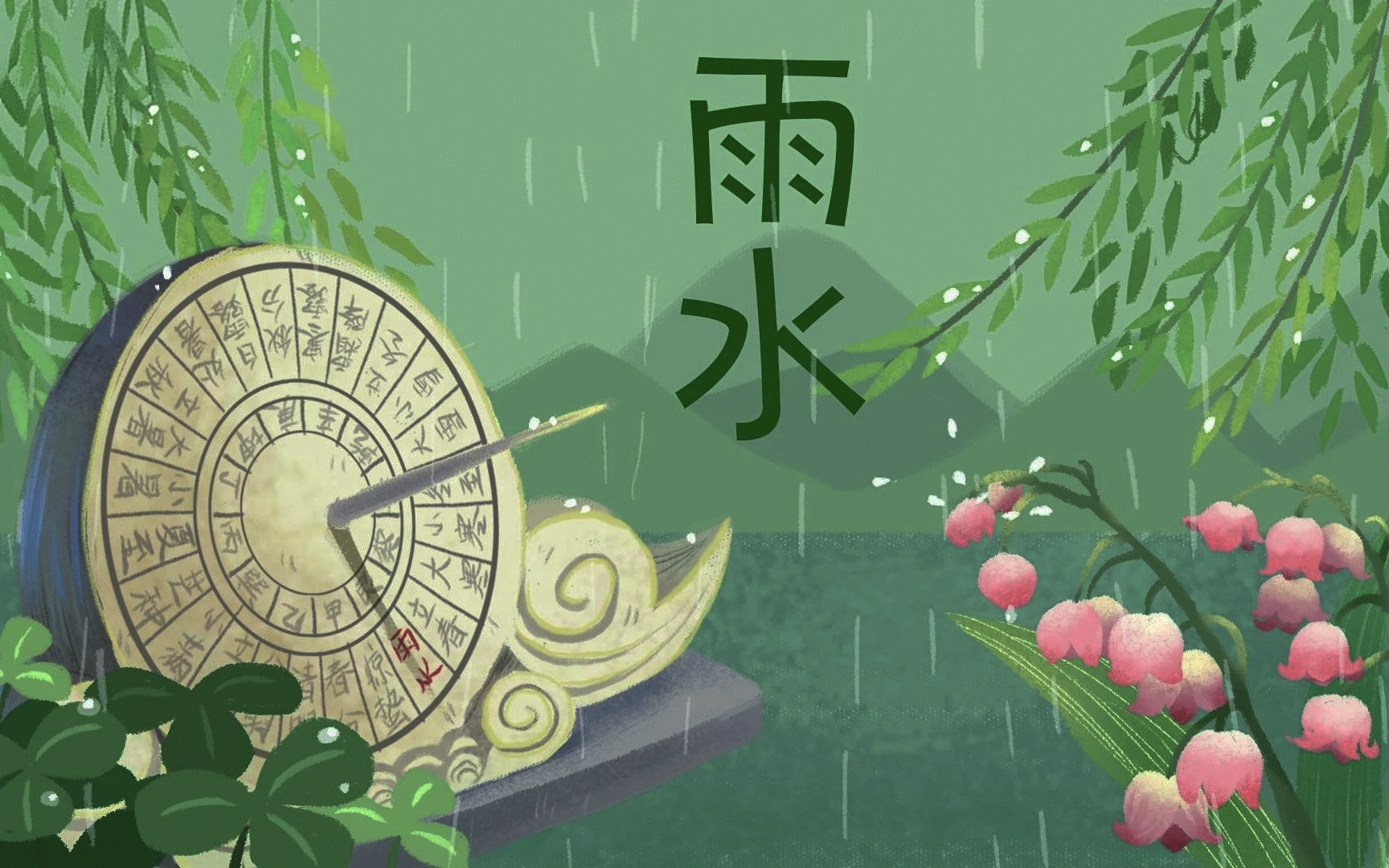 注:①本诗依七言排律体式,紧扣三图意象铺展。首联以日晷启序,接檐珠、柳浪呼应首图古建;中段融三叶草、涟漪、耕牛等元素,化用第二、三图细节;末联以檐溜回声作结,暗合首图水珠意象,形成闭环。全篇以“润泽—萌动—躬耕”为脉络,兼得自然之趣与人文之思,押平水韵一东韵,力求展现雨水节气天地交融的生生之气。②晷:读(gǔi),本意是指日影,比喻时光,如余晷,还有一种意思就是古代用来观测日影以及定时刻的仪器。