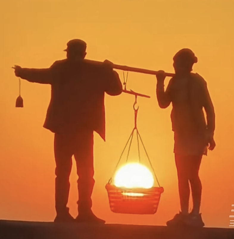 尾联:“分来半篓羲和赠/好向人间换米钱/”,收束全篇,奇思妙想。“羲和赠”用日神典故,赋予诗意神圣性。“换米钱”却回归朴实生活,神话与现实碰撞出幽默火花。既呼应开头的“肩负晨曦”,又以“米钱”点出劳动人民对自然的感恩,余味悠长。