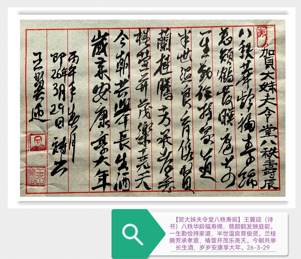 贺大妹夫令堂八秩寿辰 诗♡王翼迎