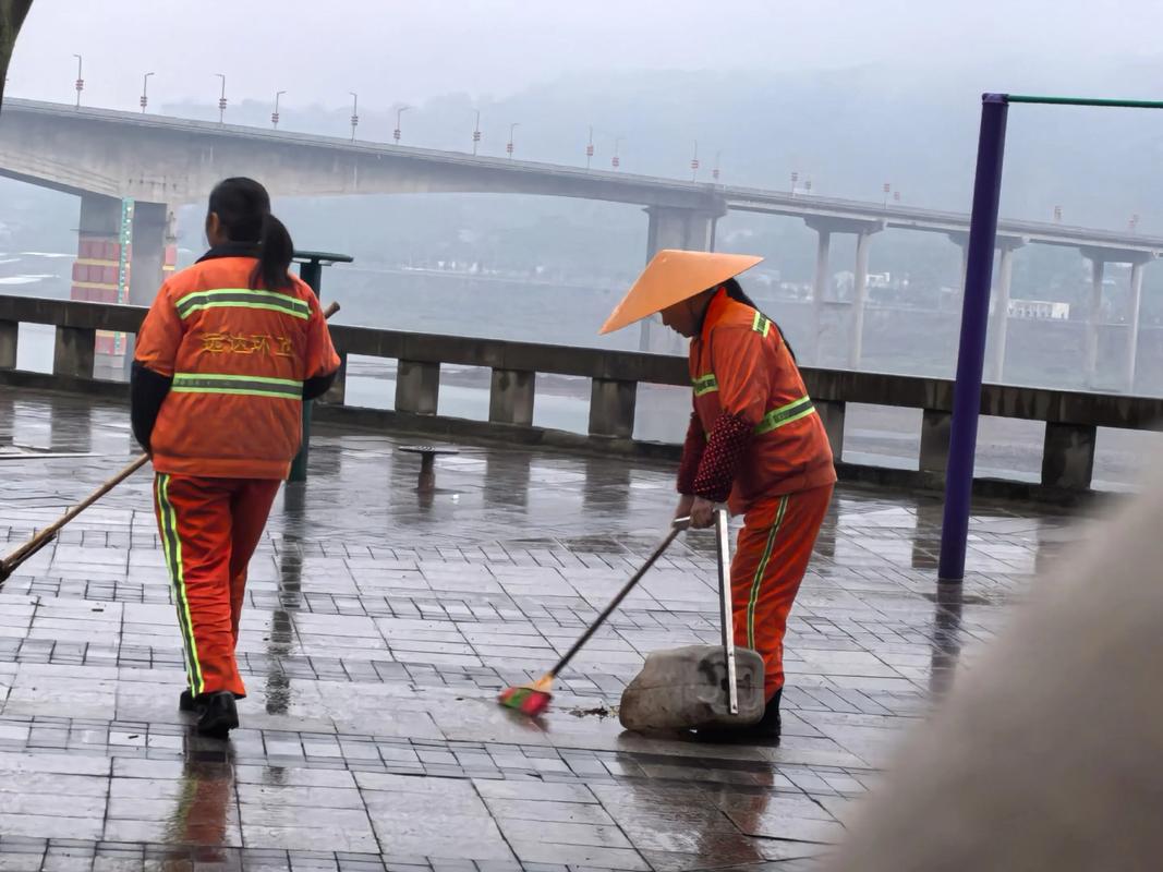 《环卫工人》 文/中元大雪壓梅伸,天晨忙起身。沿街清拉圾,小巷掃灰塵。出力精神爽,來時世界新。吆呼聲已遠,環衛早行人。