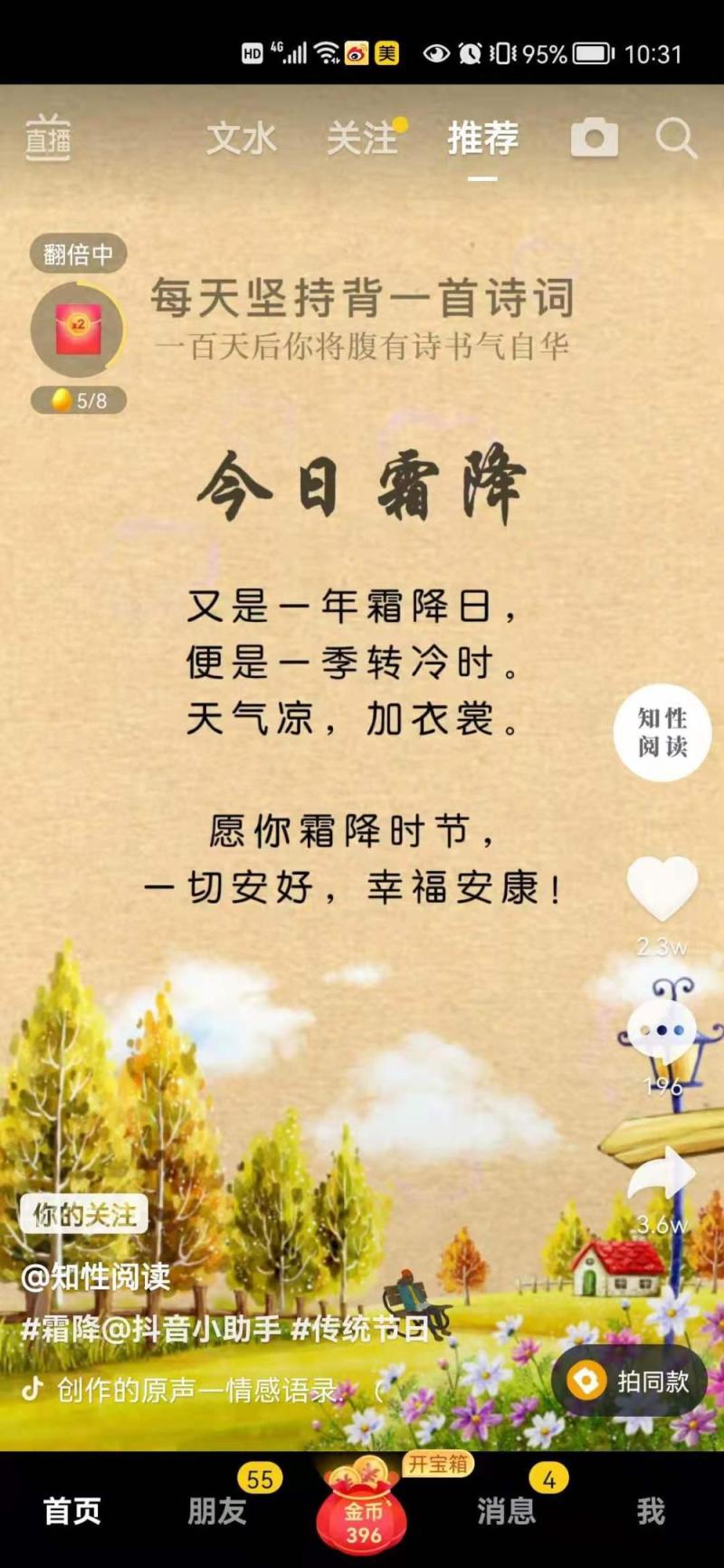 《辛丑霜降》 文/中元嶠道草驚霜,園林一遍黃。江邊椰樹舞,堤岸桂花香。極目青山瘦,高飛黑鳥狂。深溝紅柿熟,味美大家嚐。