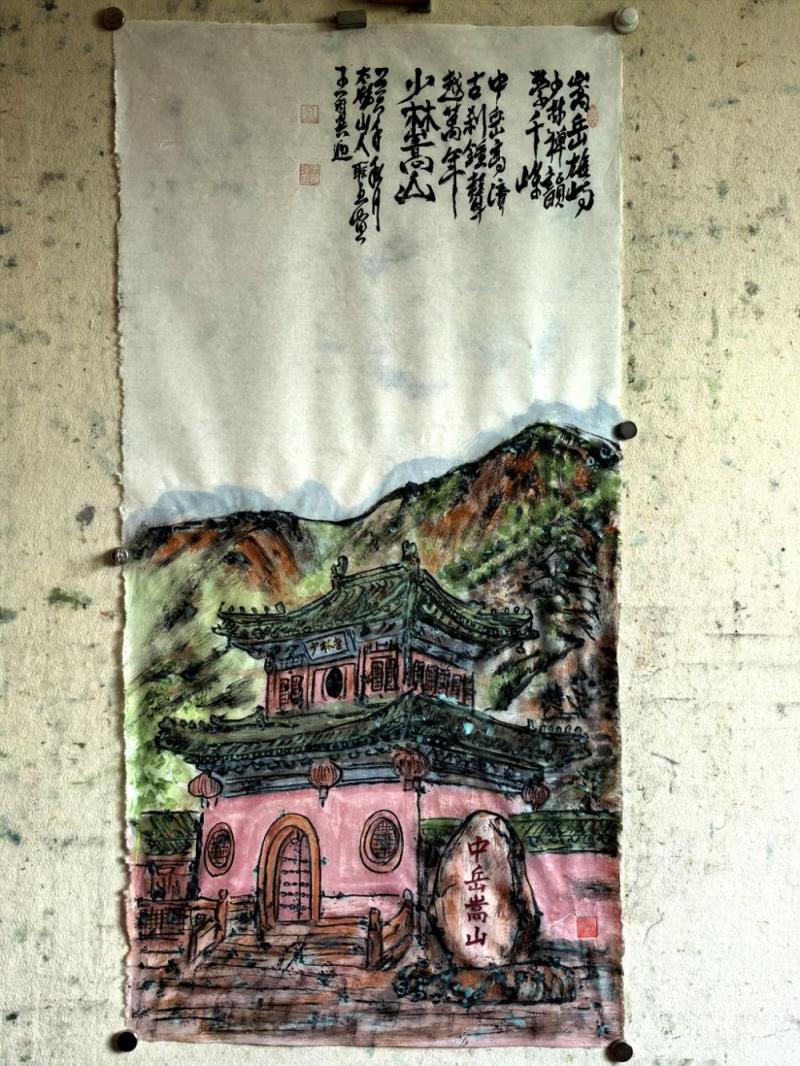 嵩岳崔嵬立昊苍,少林禅韵绕山梁。云横峻极千峰秀,万古登临仰圣光。