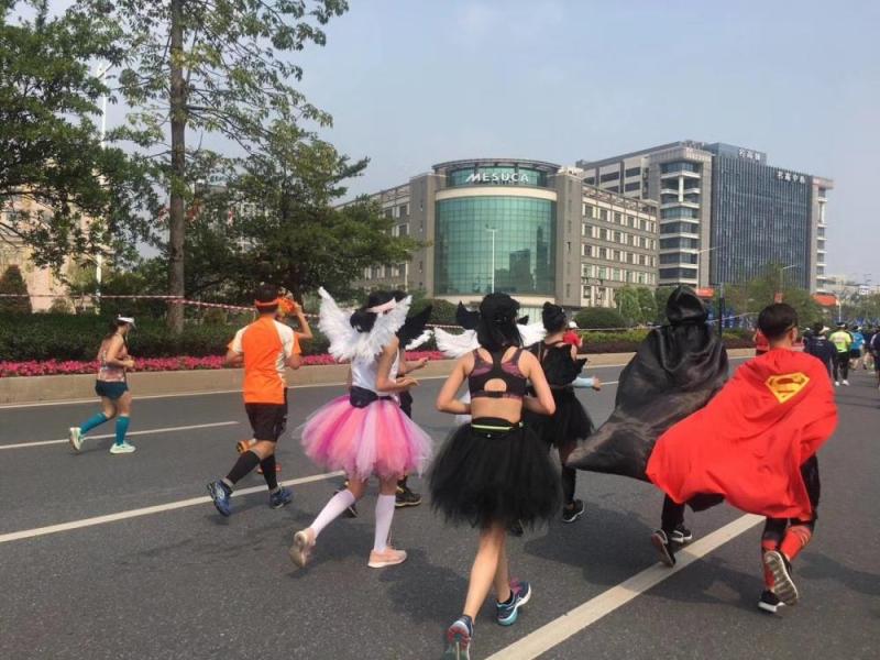 各出奇装半马行,千姿百态惹欢声。
