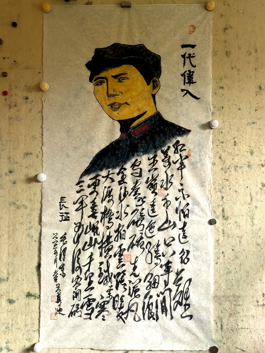 红星帽底目光遒,墨卷长征意未休。一笔掀翻旧天地,万山红遍耀千秋。