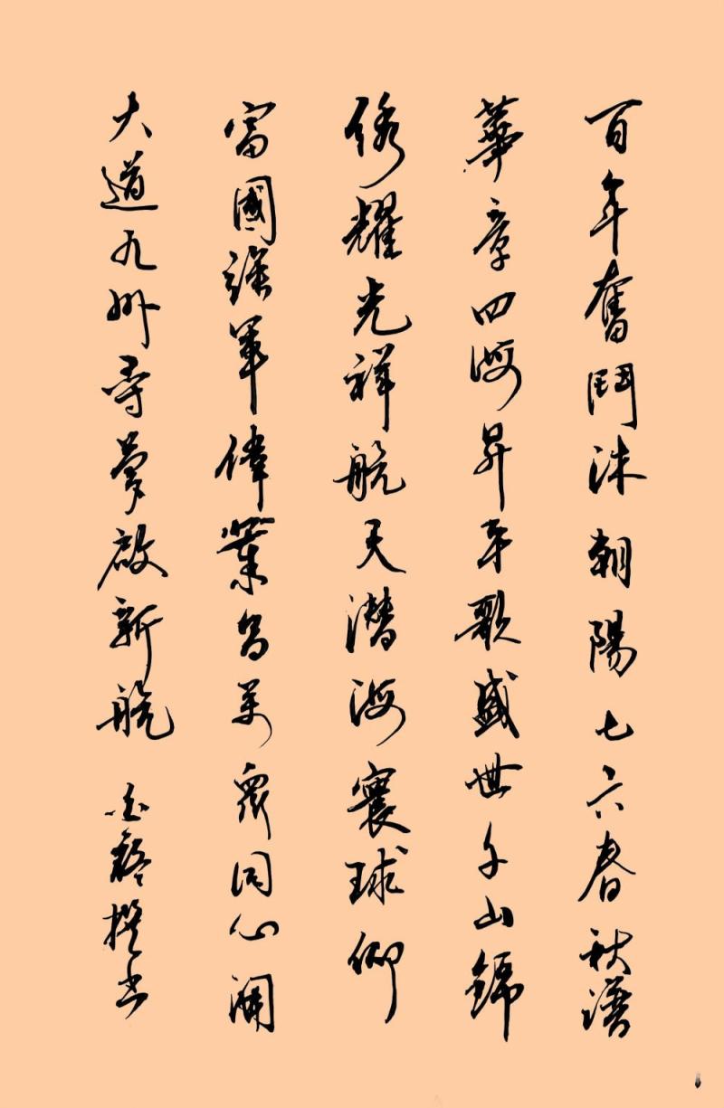百年奋斗沐朝阳,七六春秋谱华章。四海升平歌盛世,千山锦绣耀祥光。航天潜海寰球仰,富国强军伟业昌。万众同心开大道,九州寻梦启新航。