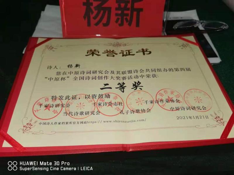 【七绝】参加第四届中原杯全国诗词创作大奖赛颁奖典礼有感