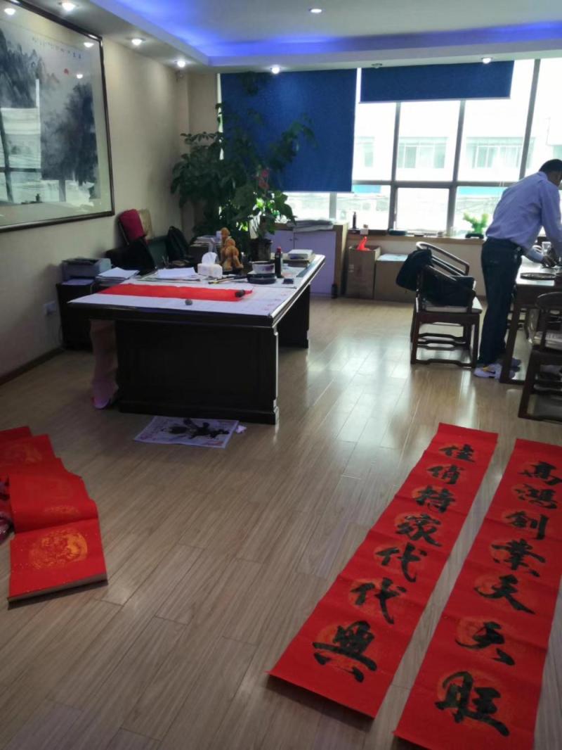 2019年底,在众鼎汽配城办公室和亮哥一起,写春联。