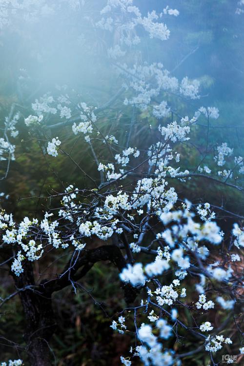 《詠梨花》 文/中元帶雨梨花含淚珠,多情玉辨映青湖。清姿撫媚春心漾,戀蝶招蜂百草圖。