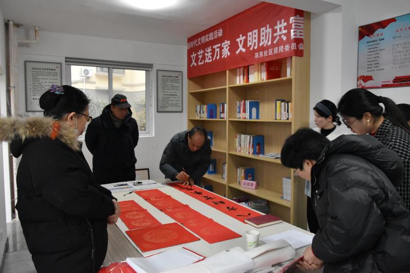 今天受社区领导之邀,为社区居民书写春联和福字,整整一天。当居民们拿着春联、福字,面带笑容的时候,我也非常高兴。