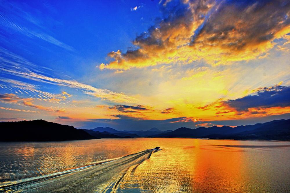 作者以毛主席的“高峡出平湖”和习总的“闽山闽水物华新”诗句来赞闽湖之美。