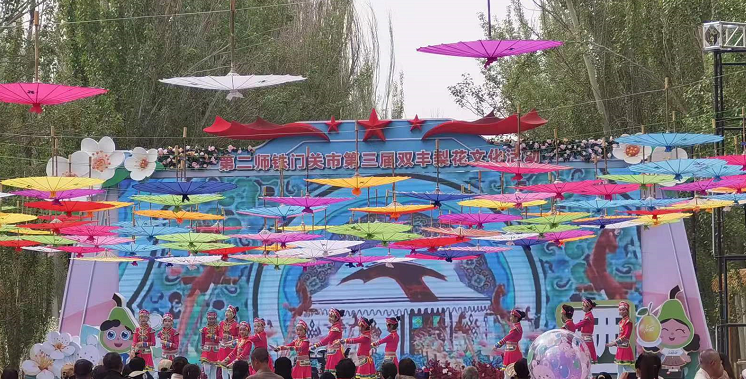 /平水韵南疆库尔勒地区盛产香梨,而铁门关双丰三十团一连的香梨,因地含硒土,其种植的香梨更是味道鲜美且营养独特。今日双丰举办第三届梨花节,车水马龙,人头攒动,晴天碧日,和风暖阳,好一幅南疆春图。