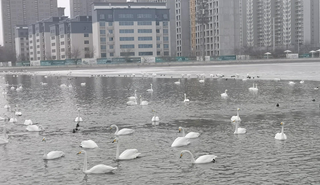 库尔勒的冬天,气温也有零下10来度,但城里的孔雀河里居然很多天鹅,惊奇之余而作。